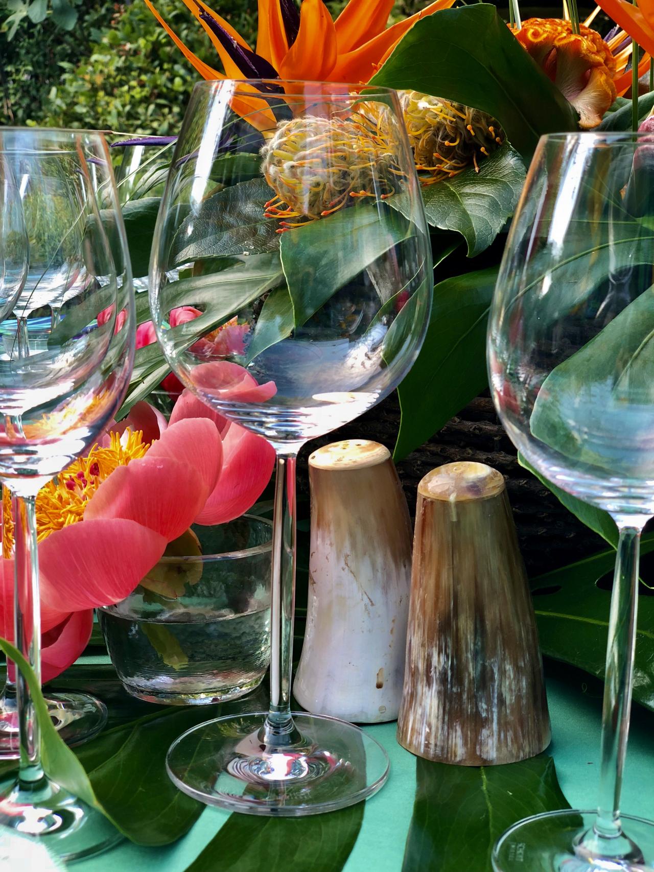 This wedding anniversary celebrating 35 years of marriage was held in a private garden in the northern suburbs of Athens. The lush greenery already present in the space inspired us to create a tropical themed celebration, with details ranging from custom printed napkins & menus, bar facades & parrots, large candleholders acting as trees, to a wooden rowing boat bar filled with ice and drinks, giving an overall jungle feel but always keeping things elegant…
